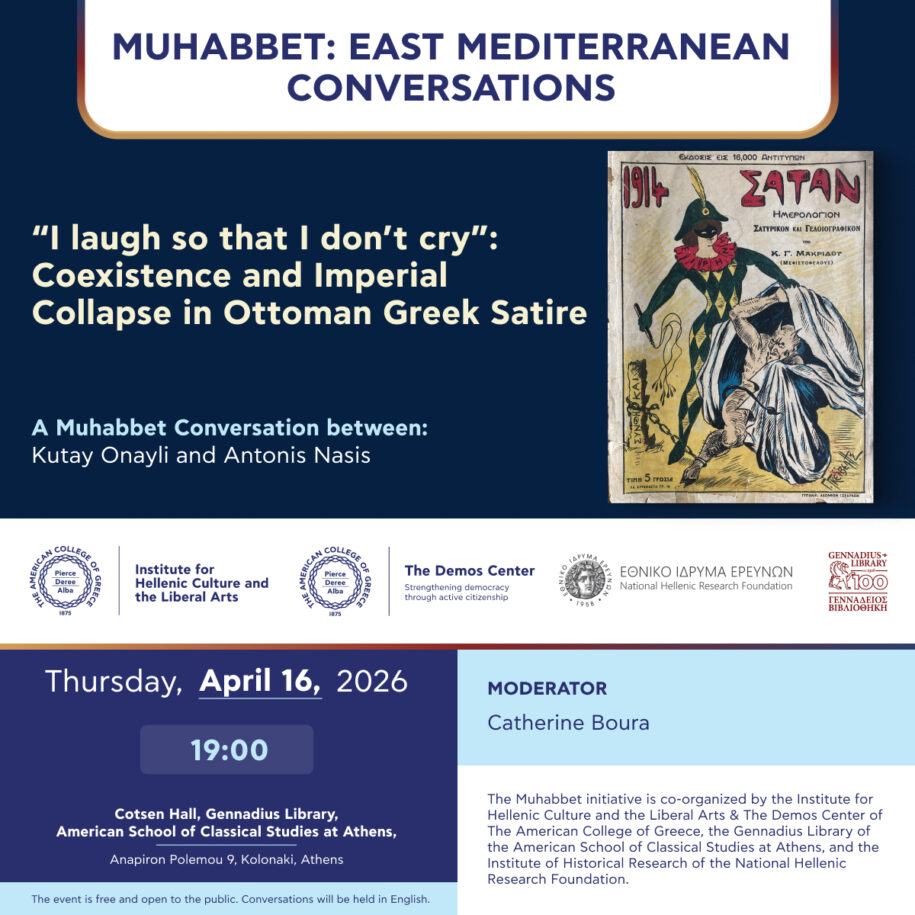 Θα συνομιλήσουν (στα αγγλικά) ο Kutay Onayli (Junior Research Fellow, Magdalen College, University of Oxford) και ο Αντώνης Νάσης (Sciences Po – CETOBaC, CNRS/EHESS), με συντονίστρια την Κατερίνα Μπούρα