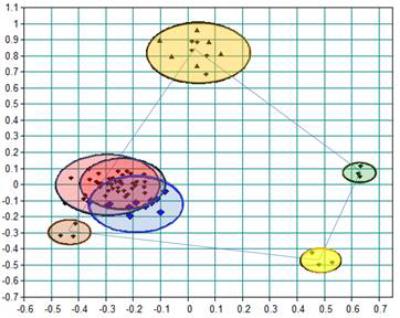 High through-put vibrational spectroscopic techniques, such as NIR diffuse reflectance spectroscopy, are able to generate large “hyperspectral” datasets which can capture the compositional variability of very large samples, e.g. a deposits. Multivariate techniques can interrogate these datasets and extract different kinds of information from them. For a recent review on multivariate analysis of clays, see Chryssikos and Gates 2017. They can produce unsupervised hierarchical classification schemes, identify the minimum number of latent key players needed to describe meaningfully the variability of the spectra, and they can be trained to correlate the spectra with independently collected data to produce quantitative chemometric tools. Published examples of chemometric algorithms developed in our laboratory can be found herehere, and here.