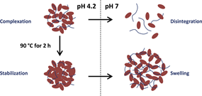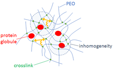 Hydrogels are synthesized by chemical crosslinking of biocompatible polymers, ionic crosslinking between oppositely charged polysaccharides and complexation between polysaccharides and proteins. These biomaterials are able to sustainably release proteins and drugs as their internal characteristic correlation length is in the order of several nm. Self-assembly and co-assembly organization is also used to modify the rheological properties of complex fluids. The rigid helical natural polyelectrolyte xanthan creates self-similar soft hydrogels whose dynamic and structural properties can be effectively modified by the use of surfactants. These fluids are investigated with the aim to develop novel dermal delivery formulations with tunable properties.