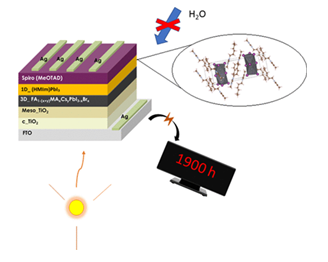 Most commercial photovoltaic materials are based on doped silicon and reach power conversion efficiencies of ca. 20%, whereas the current cost/power ratio is estimated at 0.5/Watt peak under standard test conditions of 1000 W m-2 solar irradiance and 298 K cell temperature. Although multijunction and thin-film cells (e.g. GaAs) have reached efficiencies up to 45% in laboratory scale, the high cost and toxicity issues of the incorporated materials inhibit further exploitation. Alternatively, 3rd generation technologies such as dye-sensitised solar cells and perovskite solar cells have recently received great attention as they are made of molecular materials in solution chemistry. Our research group focuses on exploratory synthesis of halide perovskites (e.g. (CH3)3SPbI3) that may be incorporated as light absorbers or hole transporters in these solar cells. Apart from the synthesis, structural and optoelectronic characterization of the materials, computational methods (DFT, molecular simulations, machine learning) are also used to elucidate their structure-properties relations.