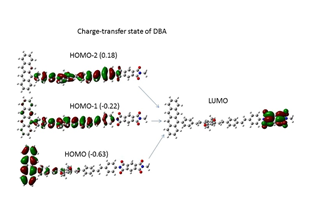 Electron donor-acceptor systems play a crucial role in present-day photovoltaic and light emitting devices. Using time dependent DFT (TDDFT), we studied molecular donor-acceptor systems with different separations like organic molecular wires using hybrid and meta-GGA, DFT functionals. Our target was first to identify the moieties and orbitals involved in the charge-transfer process but also to assess the accuracy of empirical formulas to account for the energy differences. We considered modified Mulliken-type formulas and evaluated their accuracy. In addition, in collaboration with experimental groups, for a much larger system based on porphyrins and C60, we demonstrated theoretically the charge transfer process and found agreement with experiment using semiempirical methods (PM6, ZINDO).