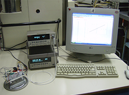 Electric characterization workstation: Complete van-der-Pauw, Hall effect platform, for measurements of the electrical properties of semiconducting thin films (I-V measurements). Platform comprises a home-made 4-point mount developed at TPCI, an electromagnet, a nano-ampere current source (Keithley 6220) and a sensitive nano-voltmeter (Keithley 2182).