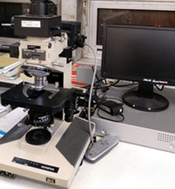 Mid-infrared FTIR microscope, by Bruker, Hyperion 2000, coupled to one of the above spectrometers (seen here to the right side of Tensor II on an optical table), equipped with a single element liquid N2 cooledMCT detector, an automated xy mapping stage, mirror lenses for transmittance and specular reflectance measurements, a Ge-ATR objective lens and mapping software.