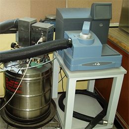 Differential Scanning Calorimetry system with temperature modulation, by TA Instruments, Modulated DSC Q200. The system comprises a specially designed cell for greater accuracy and sensitivity of the sample temperature and heat capacity. Temperature range -180 to 720 °C.