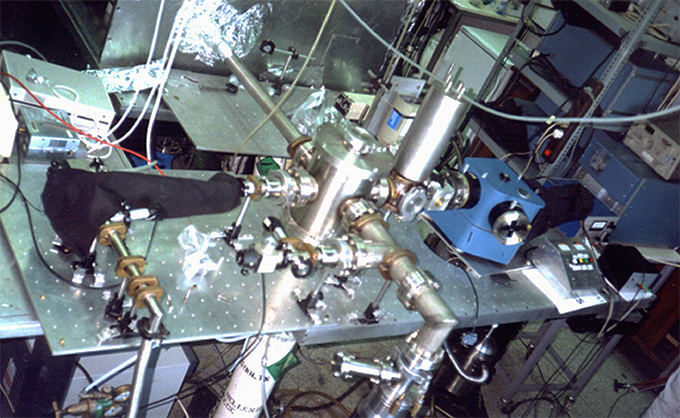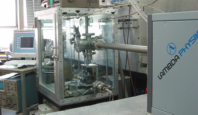 VUV pulsed laser deposition workstation, used to fabricate core–shell nanostructures (1-100nm) of hard intermetallic alloys. The main components of the system are: (1) The 157 nm laser (by Lambda-Physik LPF 200). (2)  The VUV high quality axial laser beam focusing optics. (3) The computer-controlled X-Y-Z motorized stage bearing the substrate where the core-shells are grown. The system is operating at high vacuum conditions inside an all-stainless-steel chamber. Various nano-structured core-shells, semiconductors and quazicrystals, have been synthesized with this configuration. Applications include: (1) Investigation of the magnetic and electronic properties on nano-structures. (2) Development of new photonics systems with defined functionalization such as photovoltaics. (3) Hydrogen storage nano-materials from intermetallic alloys. (4) Quazicrystals, and (5) magnetic core-shells.