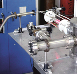 The absorption spectrometer operates over the spectral range from 110 to 200 nm. It consists of a lab-made hydrogen lamp operating in a longitudinal stabilized discharge mode, a stainless steel vacuum chamber and a VUV monochromator (by Acton, VM502) equipped with a solar-blind photomultiplier (EM1 9412).  It is also equipped with liquid nitrogen and a closed cycle helium cryogenic facility (by CTI-Cryogenic) for measurements at low temperatures (8-475 K). The high signal-to-noise ratio allows high-accuracy absorption coefficients measurements in thin polymeric films and optical materials. This set up can be operated as an X-UV reflectometer at the wavelength limit of 30 nm after differential pumping, which is well below the edge of the LIF window (110 nm).