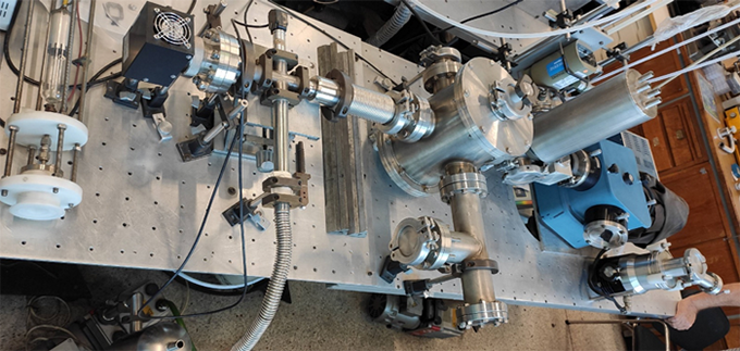 The apparatus is an ultra-high vacuum (10-7 mbar) 316 stainless-steel chamber with capability of working at variable temperature (Janis 22C/350C, (8 – 475 K) and simultaneous irradiation by light sources, with controllable photon fluxes at selected VUV and X-UV wavelengths.