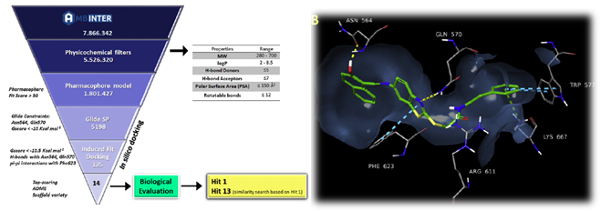 • in silico methods including pharmacophore modelling, virtual screening, molecular docking, molecular dynamics simulations, ADMET predictions