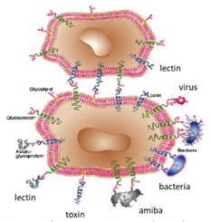 Carbohydrates play a vital role through their interactions with lectins, which are specific carbohydrate binding proteins prevalent in living organisms implicated in intercellular recognition events such as cell adhesion and migration, cell differentiation and apoptosis, and infection by viral, parasitic and bacterial pathogens.