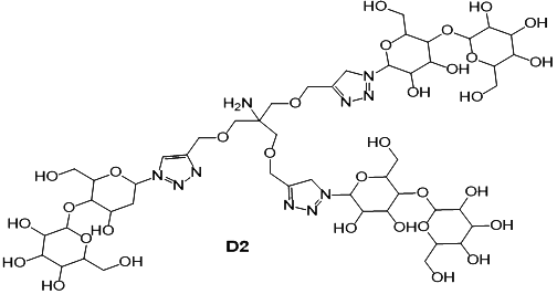 Previously, we reported the synthesis of low generation glycodendrimeric compounds (e.g. D2) and a crystallographic structural investigation of their cross-linking interactions (Fig2) with human galectin-7 (hGAl-7), a lectin involved in tumor growth [1].