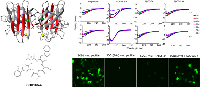 - We have identified hundreds of head-to-tail cyclic oligopeptide sequences that inhibit the misfolding and aggregation of mutant human SOD1, associated with familial forms of ALS. For one of them, termed SOD1C5-4, we have shown that it interferes with the normal course of mutant SOD1 aggregation and the formation of typical mutant SOD1 aggregates in vitro. We have found that SOD1C5-4 is cell-permeable and that it reduces the formation and cytotoxicity of mutant SOD1 aggregates in human cell lines (Matis, I. et al., Nature Biomedical Engineering, 2017).