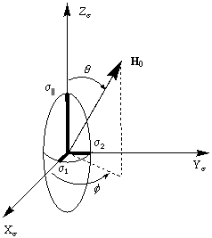 Εικόνα 1.Το ελλειψοειδές που συμβολίζει των τανυστή s τοποθετημένο μέσα στο αντίστοιχο σύστημα αναφοράς καθώς και το εξωτερικό στατικό μαγνητικό πεδίο