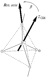 Στην γενική περίπτωση ρομβικού τανυστηCSA απαιτούνται δυο γωνίες για να καθορίσουν την διεύθυνση του άξονα περιστροφής ως προς το κύριο σύστημα αναφοράς (principal frame of reference ) του τανυστη αυτού. Οι γωνίες αυτές είναι η συνήθης πολική γωνία, στη προκειμένη περίπτωση βήτα και η αζιμουθική γωνία, εδώ άλφα.